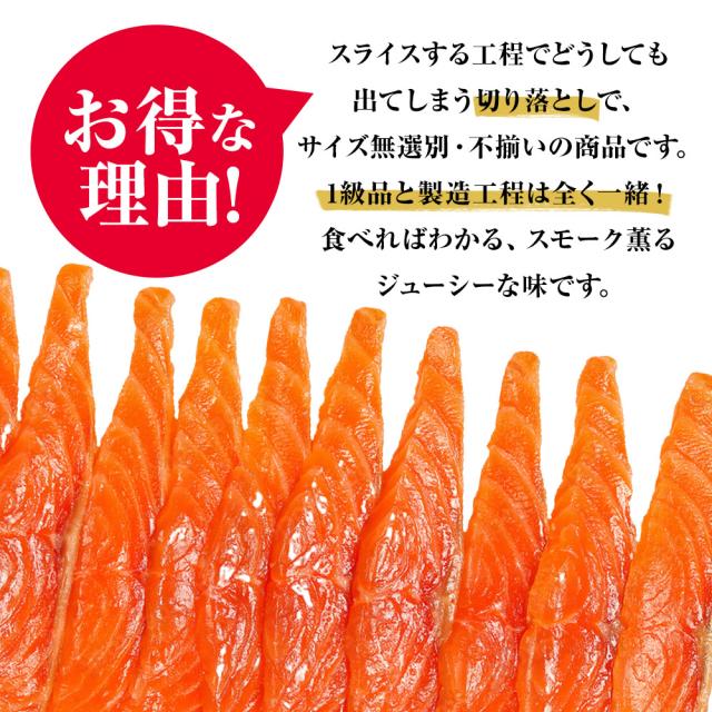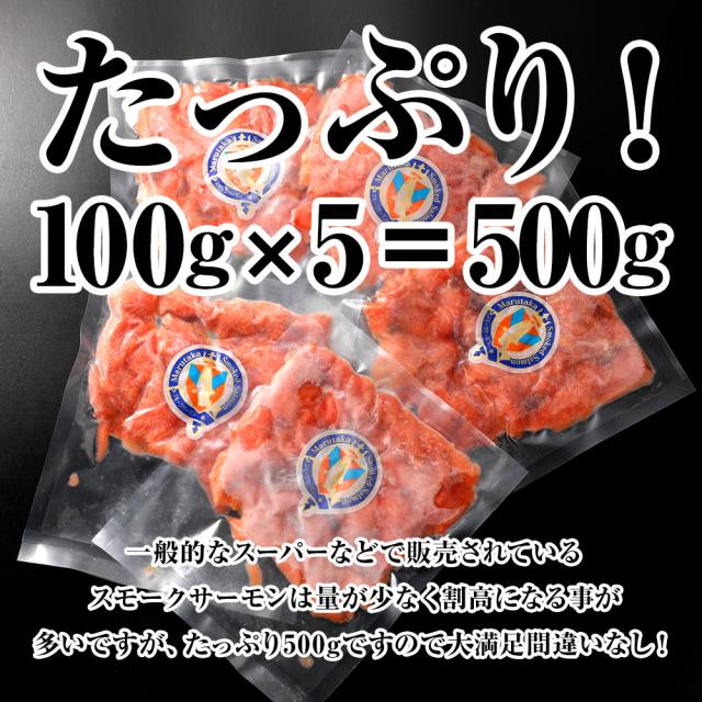 訳ありスモークサーモン 100g×5 鮭 さけ スモークサーモン 魚 栄養 おかず レシピ 冷凍 送料無料 酒の肴 つまみ おつまみ アレンジ 業務用 食品 まとめ買い