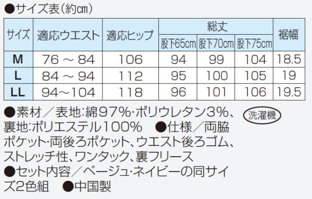 カルビア 裏フリース後ろゴムストレッチパンツ 2色組 選べる股下丈 あったかパンツ 伸縮 ズボン メンズ 紳士服 シニア 男性 裾上げ済み ネイビー ベージュ 無地 シンプル かっこいい シニアファッション 40代 50代 60代 70代 80代 父の日 お父さん おじいちゃん 秋冬 秋物 冬物 暖かパンツ 長ズボン 紺色 薄茶色
