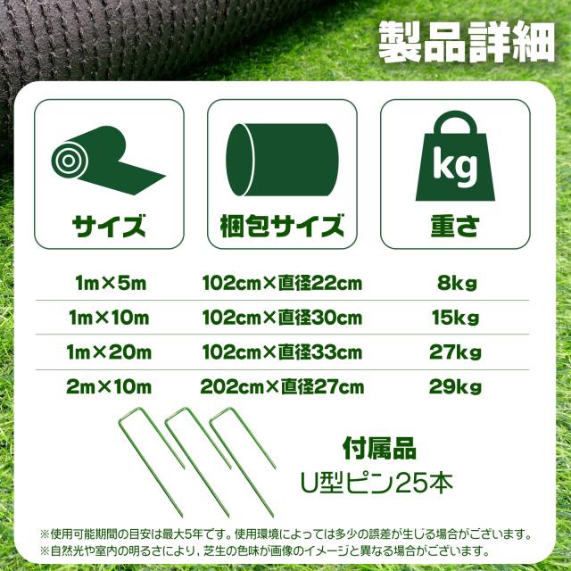 人工芝 1m×5m ロール 人工芝 リアル diy マット 芝生35mm U字ピン25本付 人口芝生 屋外 庭 ベランダ 造花用人工芝 防草 シート マット
