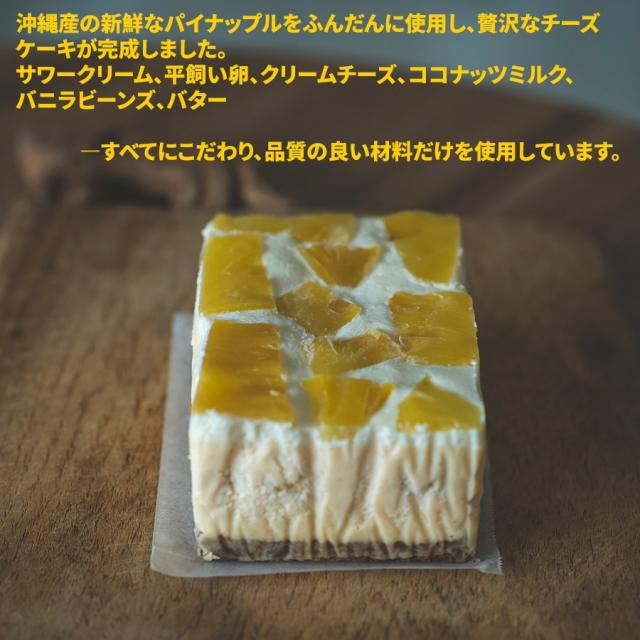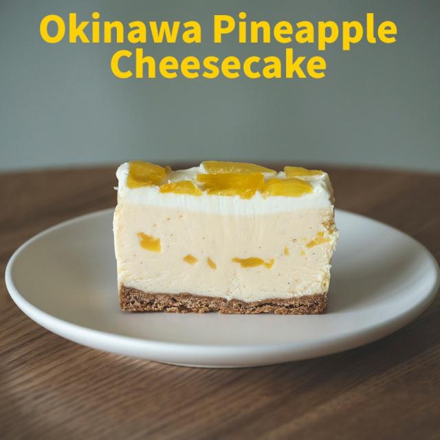 沖縄産の新鮮なパイナップルをふんだんに使用し、贅沢なチーズケーキが完成しました。