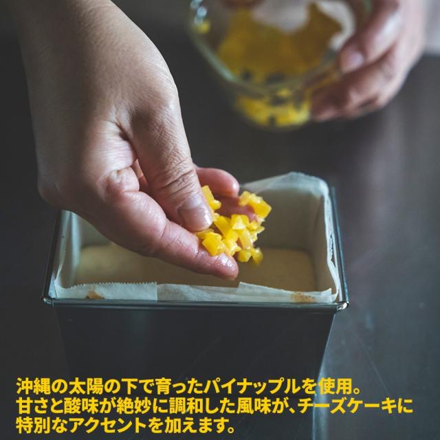 沖縄の太陽の下で育ったパイナップルを使用。甘さと酸味が絶妙に調和した風味が、チーズケーキに特別なアクセントを加えます。