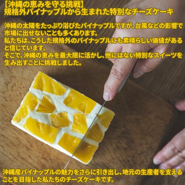 沖縄産パイナップルの魅力をさらに引き出し、地元の生産者を支えることを目指した私たちのチーズケーキです。