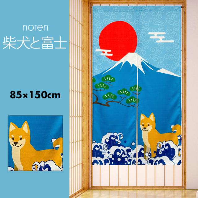 のれん おしゃれ カーテン 間仕切り 目隠し 柴犬 和風 和柄 日本 日の丸 富士山 白波 柴犬と富士 85×150cm