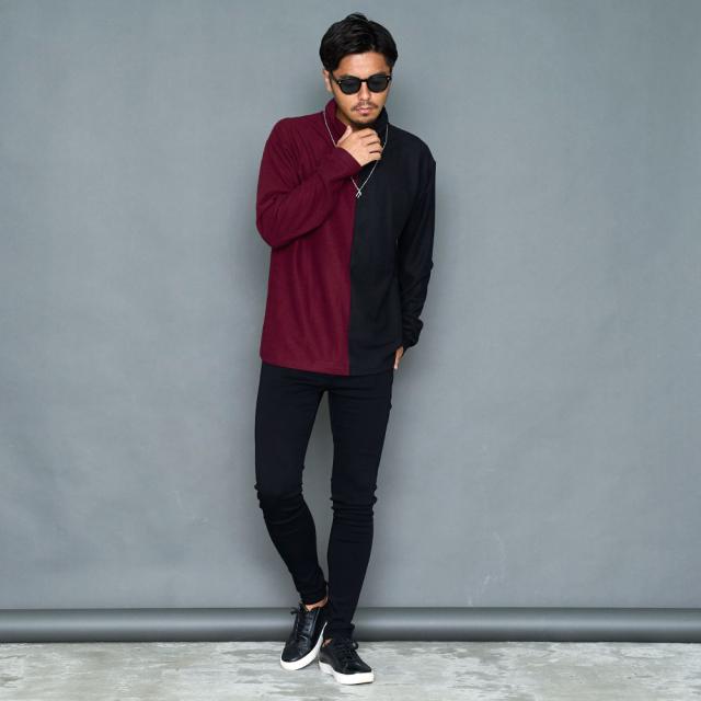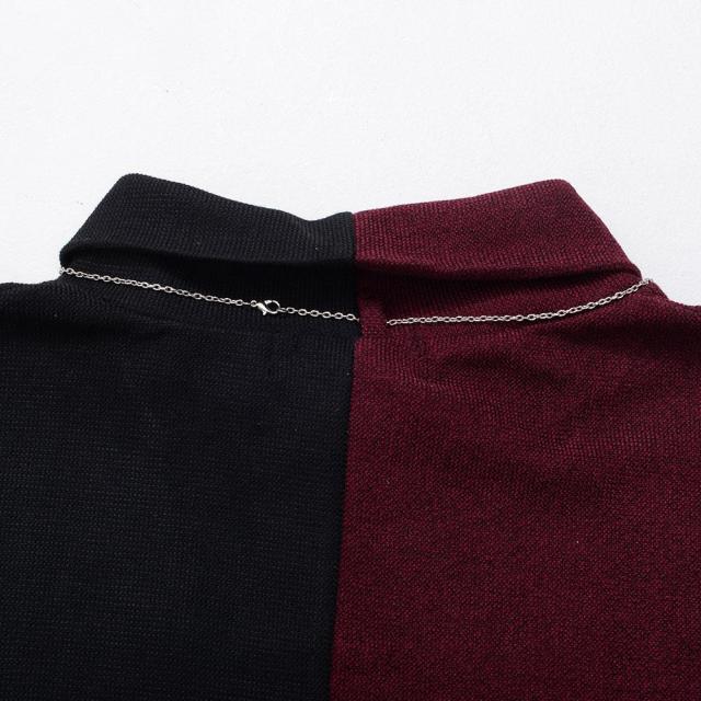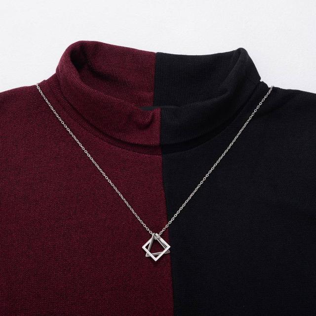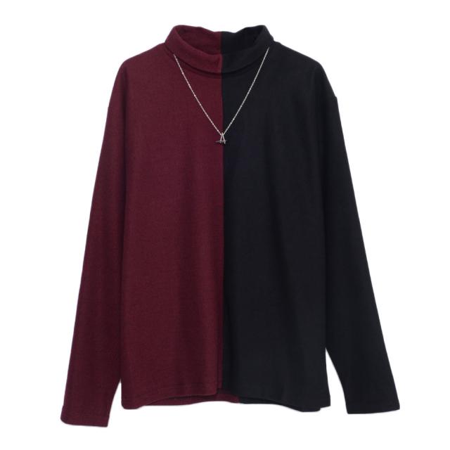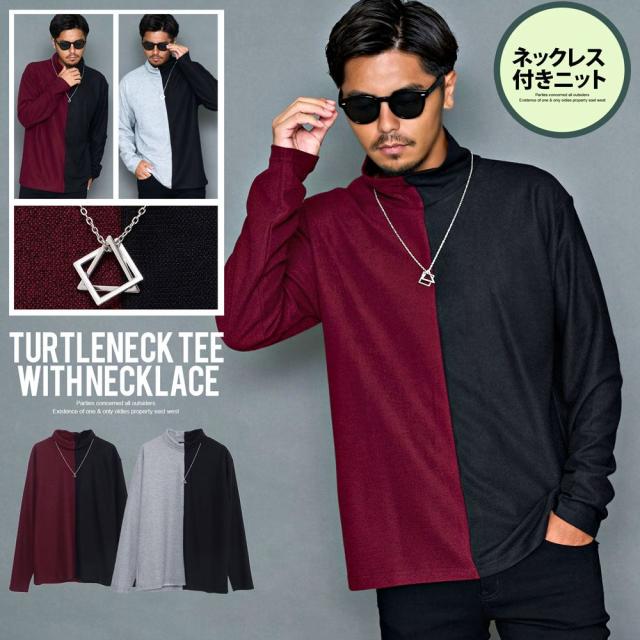ニット メンズ セーター ブランド おしゃれ ネックレス付き 2点セット トップス カットソー インナー タートルネック 無地 配色 切り替え 切替 大きいサイズ ゆったり ストレッチ 伸縮性 ユニセックス レディース 男女兼用 ブラック ワイン 赤 黒 M L CavariA キャバリア 大人 上品 きれいめ モード カジュアル ストリート ストリート系 韓国 韓国系 韓国ファッション 下北沢 下北系 古着 古着系 90s 90年代 2000年代 Y2K 服 秋 冬 秋服 冬服 男性 男 父の日 父の日ギフト 父の日プレゼント 20代 30代 40代 ファッション メンズファッション 東京 プレゼント 誕生日 記念日 贈り物 ギフト配送について