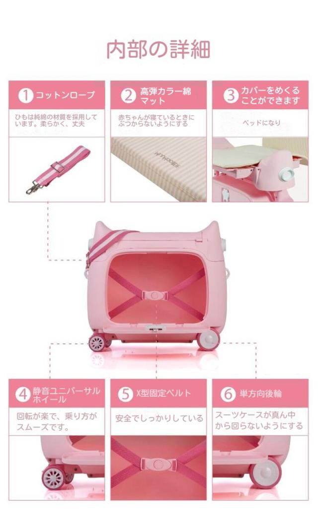 旅行の重い負担から抜き出し、荷物だけでなく、子供をも乗れるので、大変便利です。お子様はより快適で安定した乗り心地を体験できます。週末の買い物でも、赤ちゃんと一緒の買い物でも、公園を散歩するときでも、一人で使うことができます。