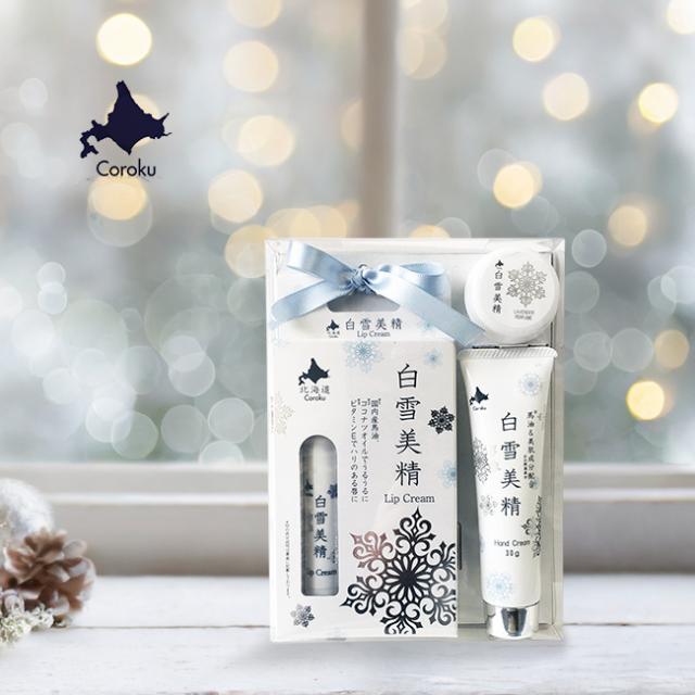 白雪美精 3点セット(リップクリーム ハンドクリーム もらって嬉しい ギフト セット プレゼント 練り香水 ラベンダー 香水 女性 誕生日 同僚 退職 プチギフト コスメ かわいい 日本製 練香水 保湿) 即納