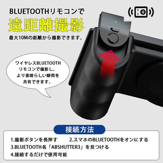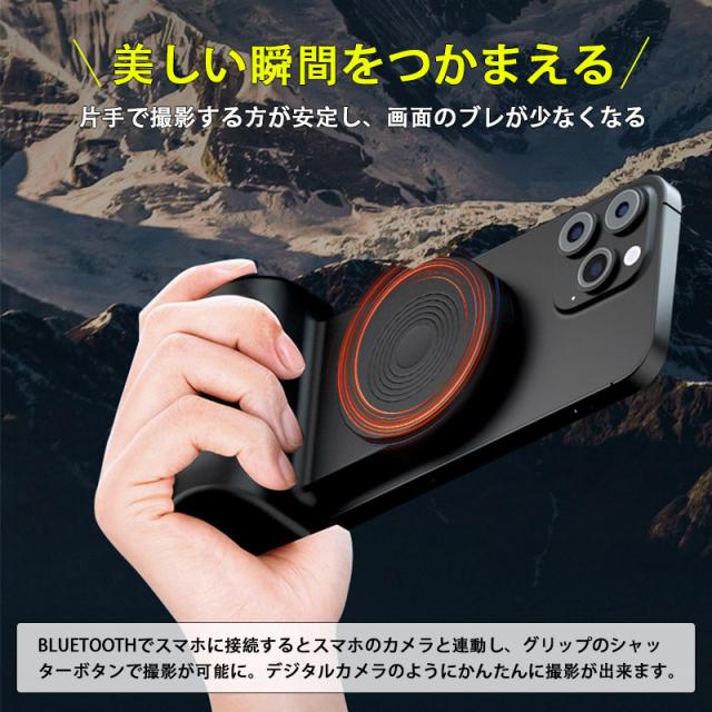 Bluetoothスマートフォンホルダー 磁気 キャップグリップ カメラ スマホグリップ マグネット式 カメラグリップ 270度回転可能 片手操作 Bluetoothリモコン付き 人間工学設計 取付可能 旅行 写真 動画を撮る 自撮り棒 スマホスタンド iPhone/Androidなどに対応