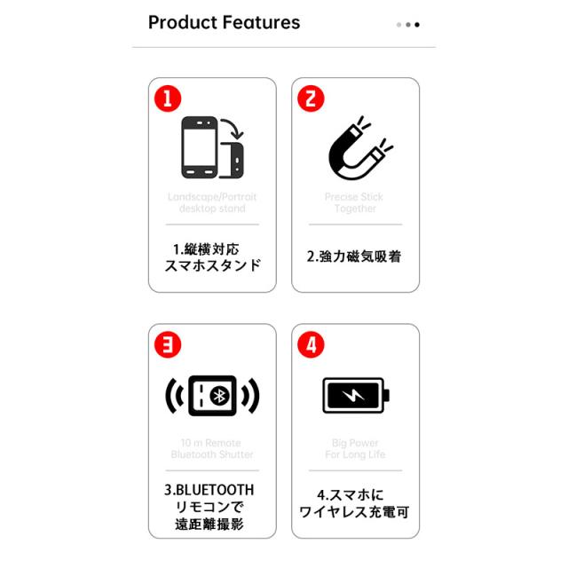 スマホグリップ カメラ Magsafe 自撮り棒 Bluetoothリモコン付き スマホホルダー マグネット式 片手操作 旅行 写真 動画を撮る