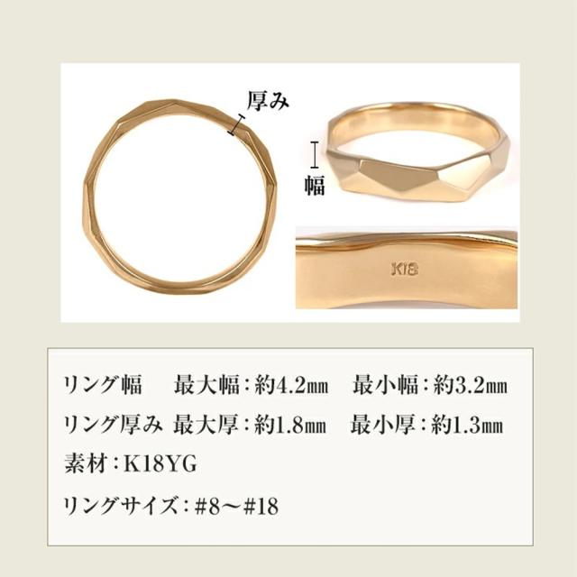 指輪 レディース リング 重ねづけ 太い カット ファッションリング K18 k18 18金 金属アレルギー ペアリング 結婚指輪 エタニティ 地金 18YG 19KPGイエローゴールド ピンクゴールド ジュエリー アクセサリー 誕生日 プレゼント 女性 ギフト 母の日