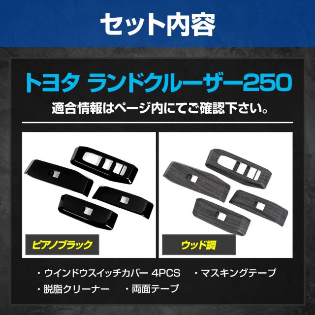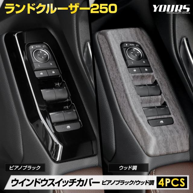 [対象商品タイムセール10%OFF]ランドクルーザー250 専用 ウインドウスイッチカバー ガーニッシュ 4PCS ピアノブラック ウッド調 木目 LAND CRUISER 250 トヨタ TOYOTA [2]