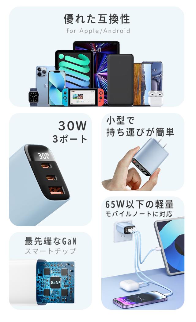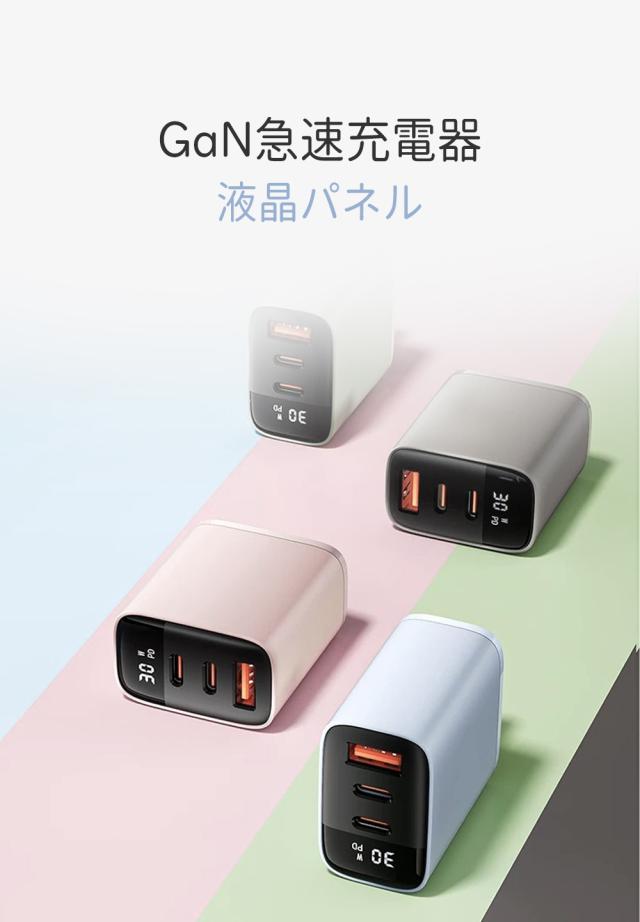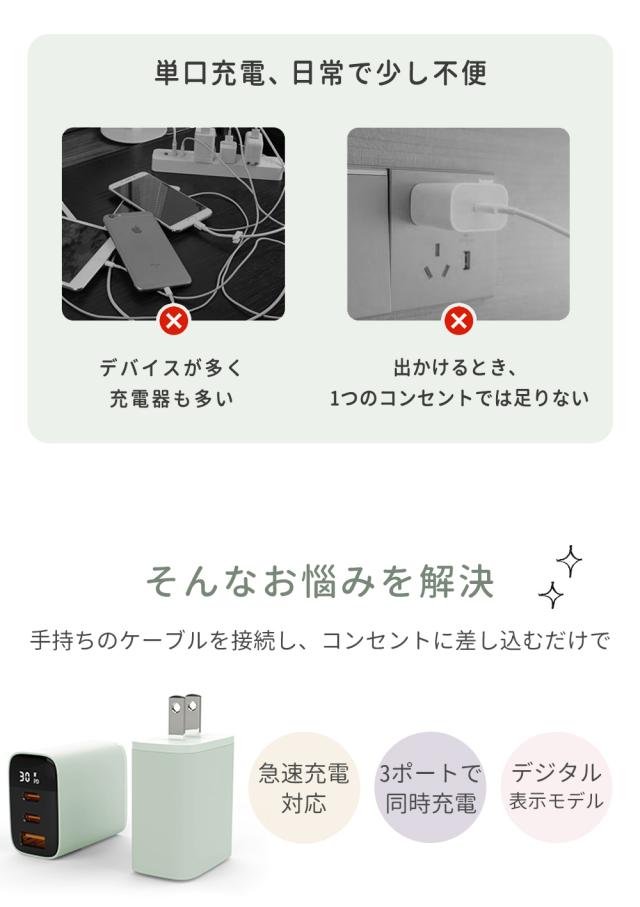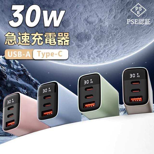【iphone16シリーズ対応・30W急速充電】充電器 タイプc PD 急速充電器 Type-C 3ポート ACアダプター 充電器 iphone 超小型 スマホ充電器 アイフォン 携帯充電器 Android/iOS対応 液晶パネル付き【PSE認証】