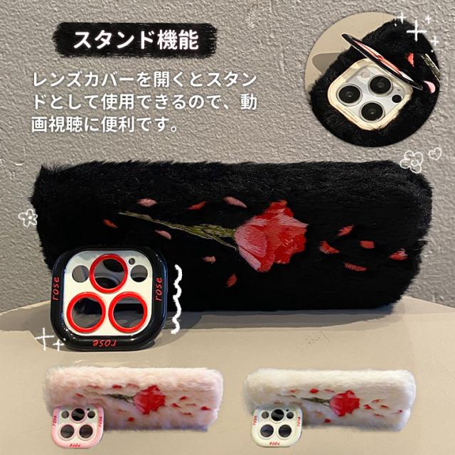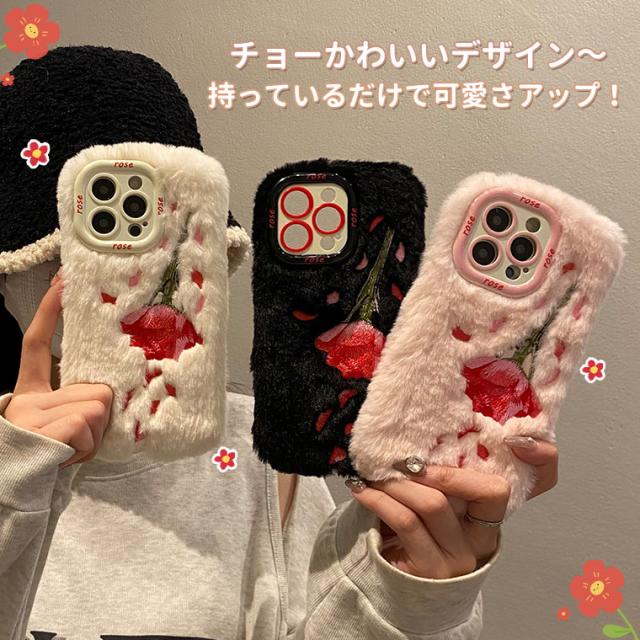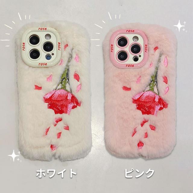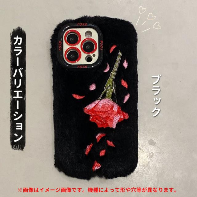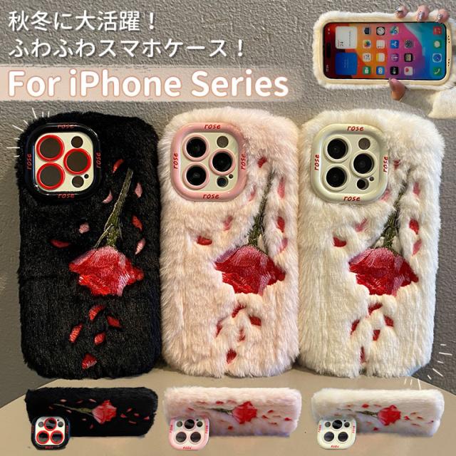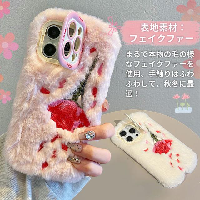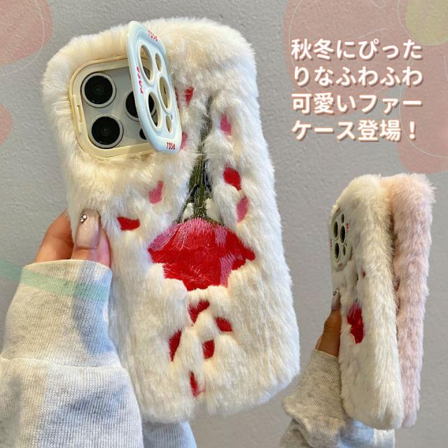 iPhone16 Pro Max ファーケース iPhone 16 カバー iPhone 15 Pro ファーカバー iPhone15 Plus ケース ファー iPhone 14 Pro Max ケース 秋冬 暖かい 可愛い ふわふわ もこもこ アイフォン15 フワフワ 耐衝撃 スマホケース 韓国 花柄 刺繍 カメラレンズ保護 スタンド機能