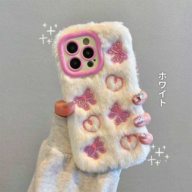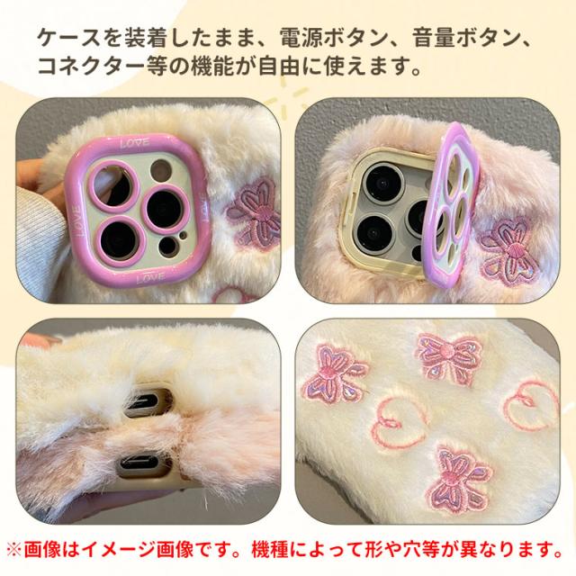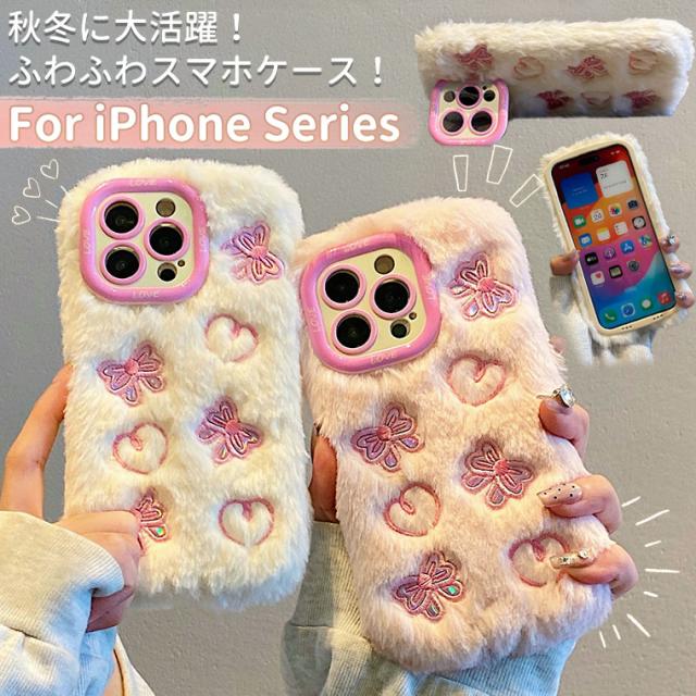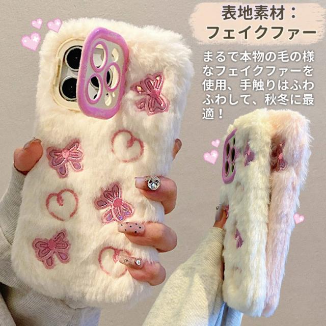 iPhone16 Pro Max ファーケース iPhone 16 カバー iPhone 15 Pro ファーカバー iPhone15 Plus ケース ファー iPhone 14 Pro Max ケース iphone14 カバー 秋冬 暖かい 可愛い ふわふわ もこもこ アイフォン15 耐衝撃 スマホケース 韓国 カメラレンズ保護 スタンド機能 蝶々柄