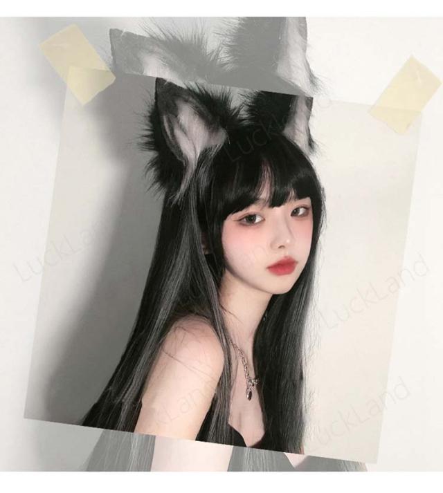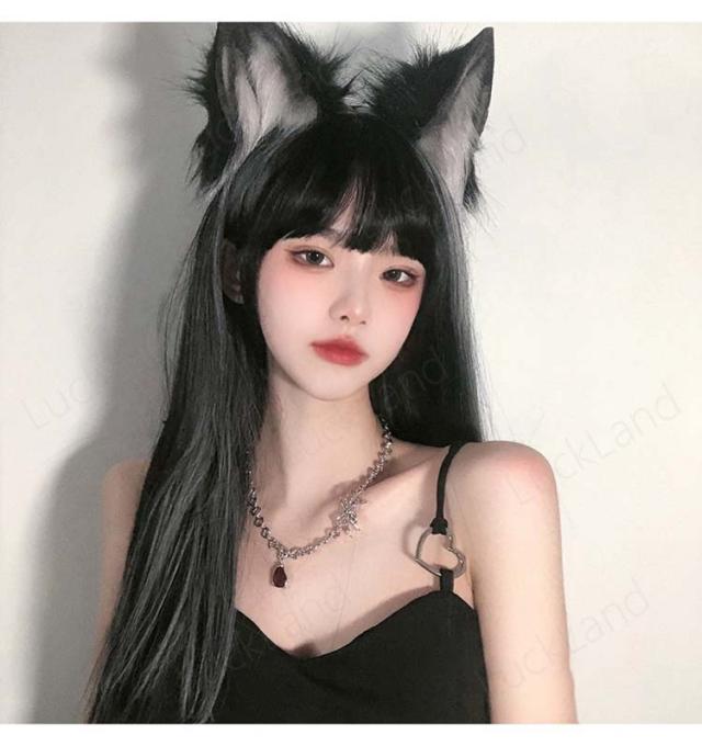 コスプレ ハロウイン コスプレ道具 狼耳 オオカミ耳 猫耳 ネコ耳 カチューシャ ふわふわ 黒 セット キッズ しっぽ 尻尾 手作り 文化祭 学園祭 仮装 変装 もふもふ コスチューム
