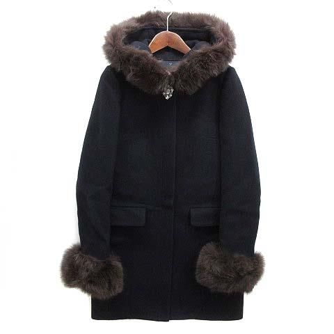 【中古】アプワイザーリッシェ Apuweiser-riche 5WAY コクーンコート ロング ウール ビジュー ネイビー 紺 1 24422350 レディース