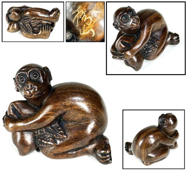 | 商 品 名 | 松山銘 桃抱き猿根付 手彫り 唐木彫 | ||