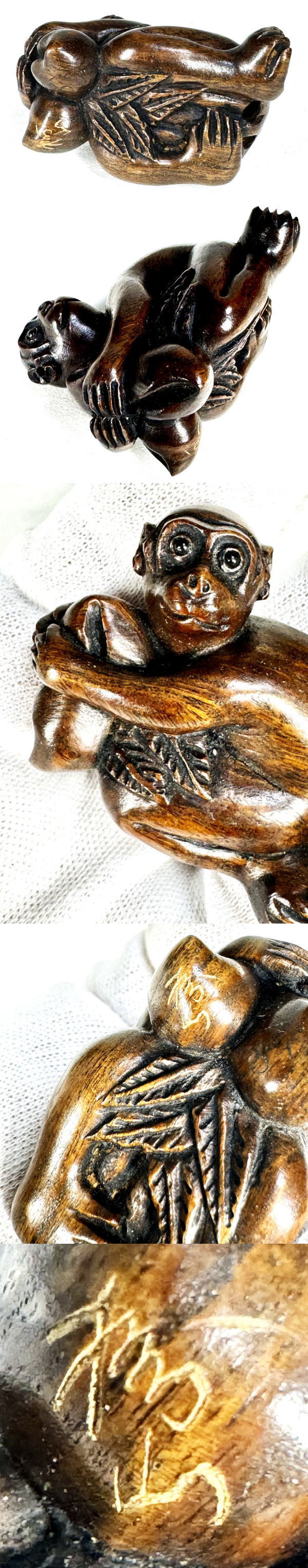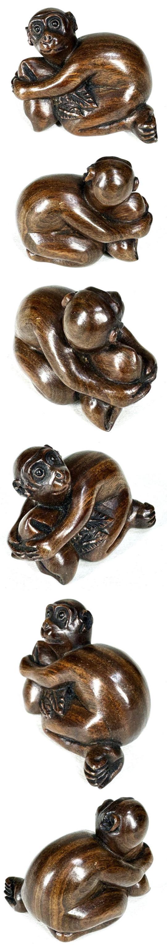 【送料無料】松山銘 桃抱き猿根付 手彫り 唐木彫 木彫り 一刀彫り 紅木 置物 骨董 古玩 旧蔵 古美術 古賞物 (旧家蔵出し) 威龍彩雲通販