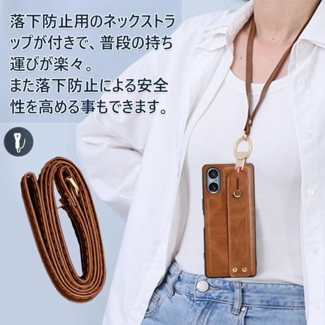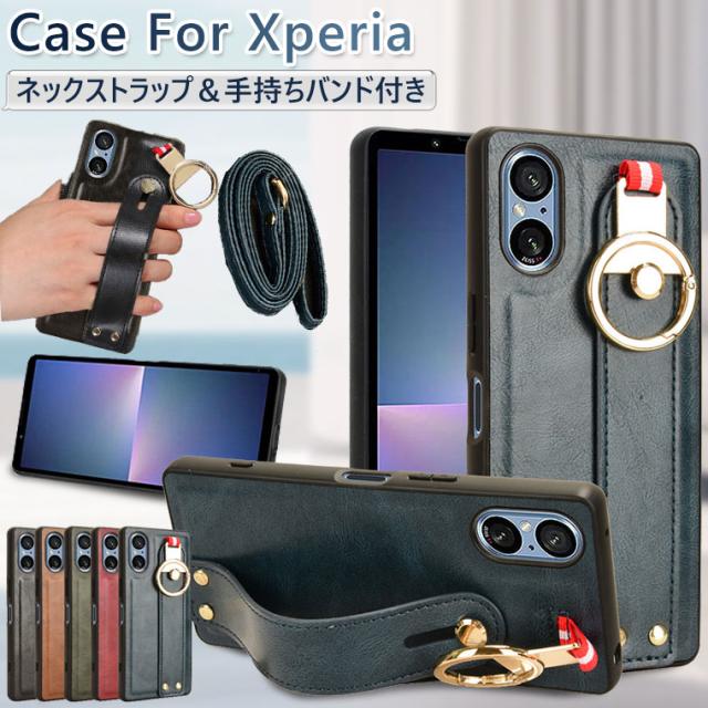 Xperia 1 VI 10 VI 1VII 10VII ケース ネックストラップ Xperia 1 IV ケース バンド 革 Xperia 5 IV ケース ストラップ付き Xperia 10IV 5IV 1IV カバー 背面カバー エクスぺリア 10/5/1 IV スマホケース 手持ちバンド スタンド 耐衝撃 かわいい おしゃれ