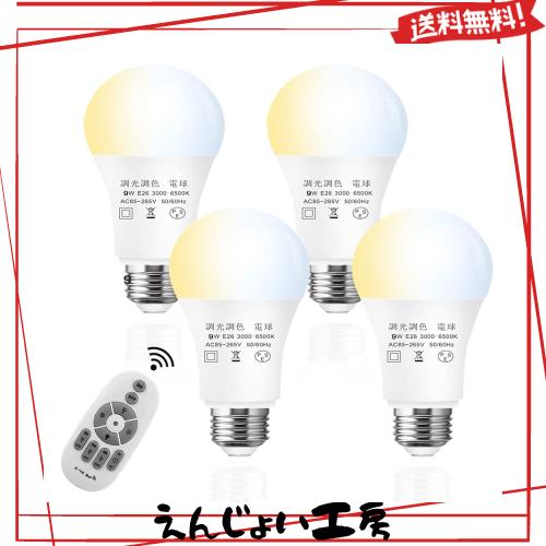 LED電球 4個セット タイマー機能付き リモコン9W 調光調色(昼光色 昼白色 電球色)80W白熱電球形相当,テーブルランプ、天井シャンデリアに