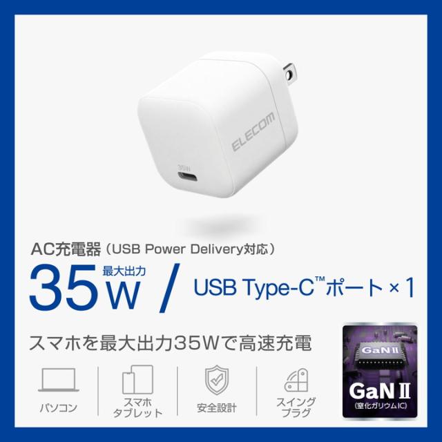 エレコム AC充電器 USB Power Delivery 35W Type-C ×1 USB 充電器 パワーデリバリー スイングプラグ ホワイト ┃MPA-ACCP9235WH