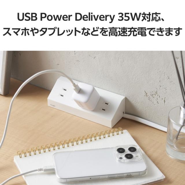 手のひらサイズでiPhoneを高速充電!最大35W出力のUSB AC充電器です。iPhoneをはじめとしたスマートフォンはもちろん、MacBook Airなどのノートパソコンの充電にも使えます。小さなバッグにもすっぽり収まり、出張・外出の際の持ち運びに便利です。