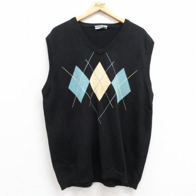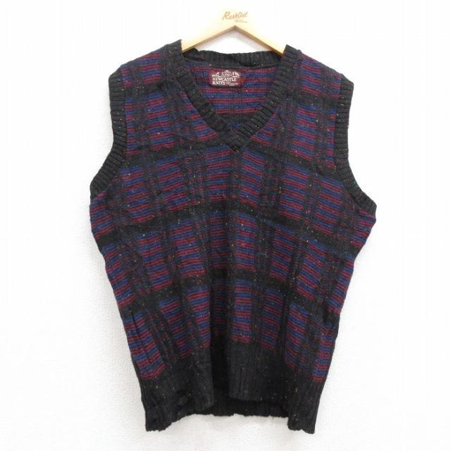 古着 リーボック REEBOK ゴルフ ニット ベスト メンズ 90年代 90s ワンポイントロゴ コットン Vネック 黒他 ブラック spe Lサ 中古 古着