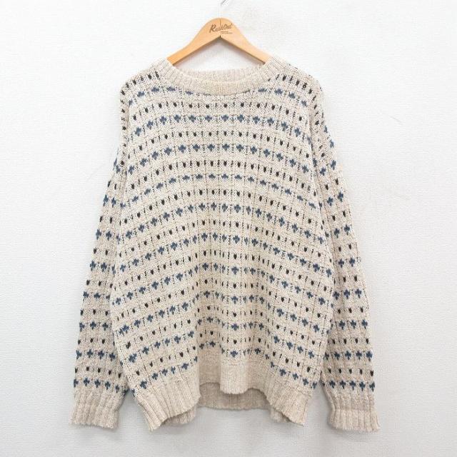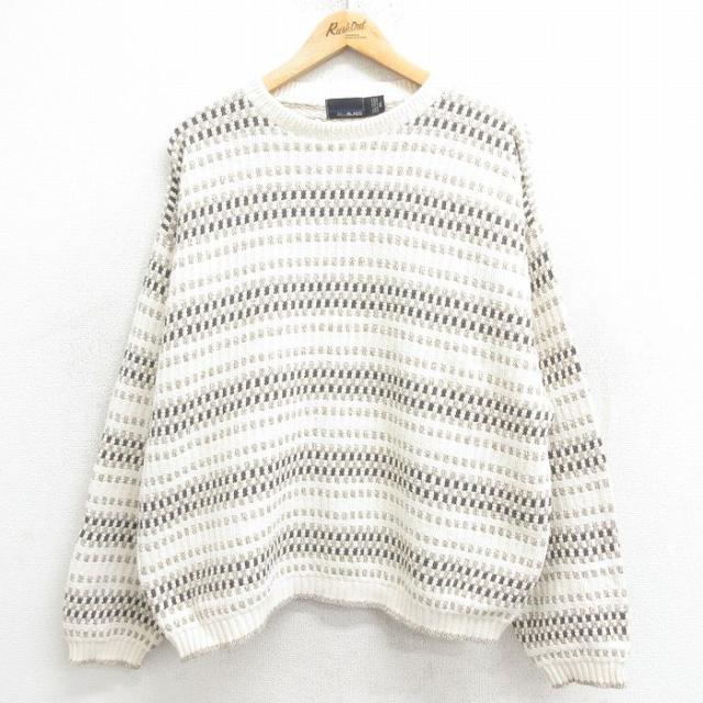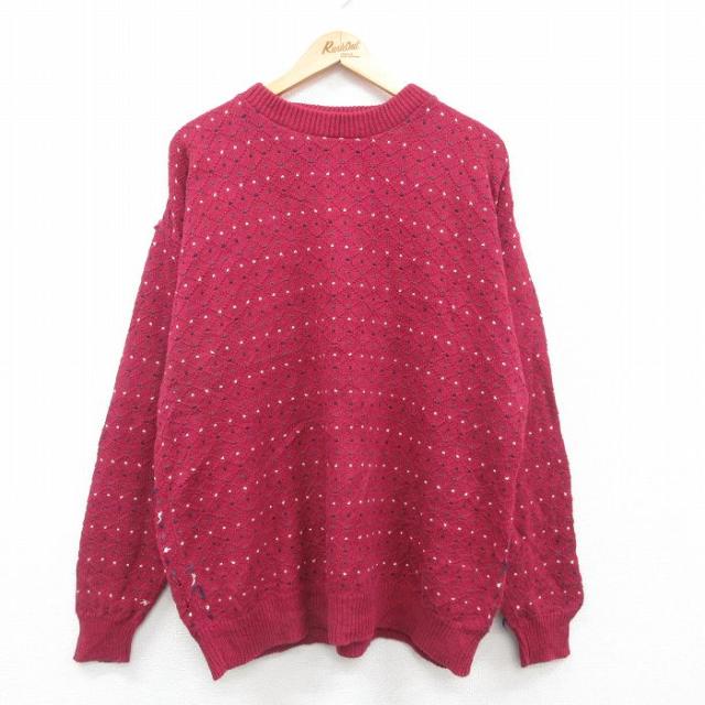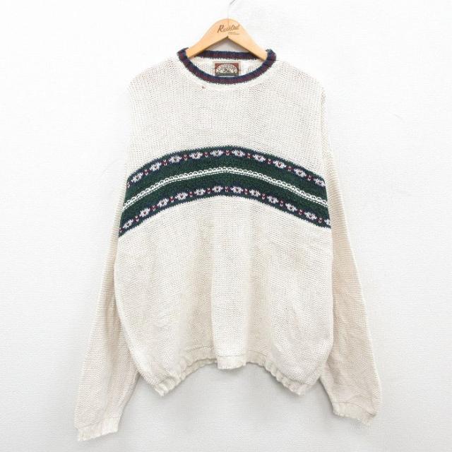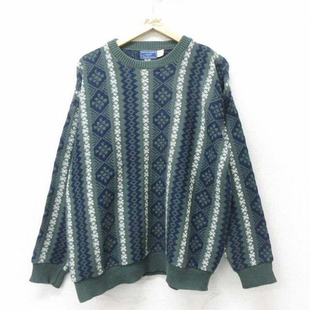 古着 長袖 セーター メンズ 90年代 90s 手織り 大きいサイズ コットン クルーネック USA製 緑 グリーン XLサイズ 中古 ニット 中古 古着
