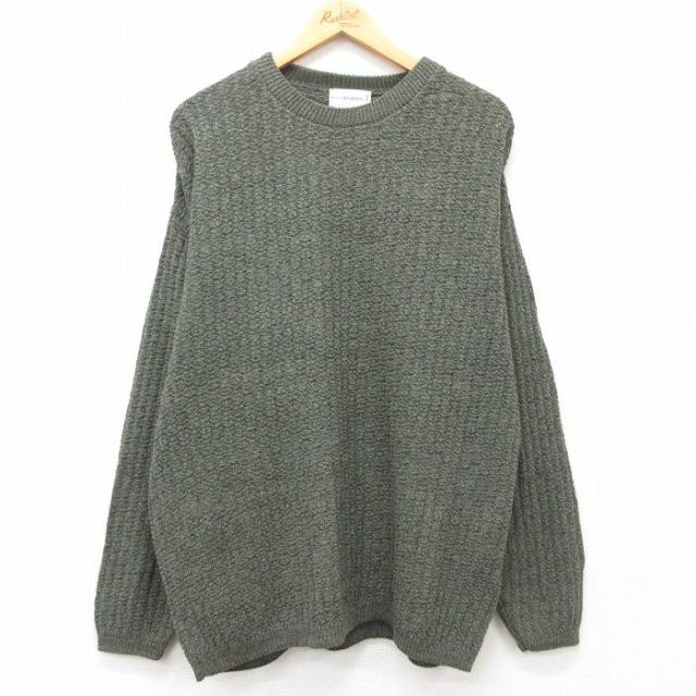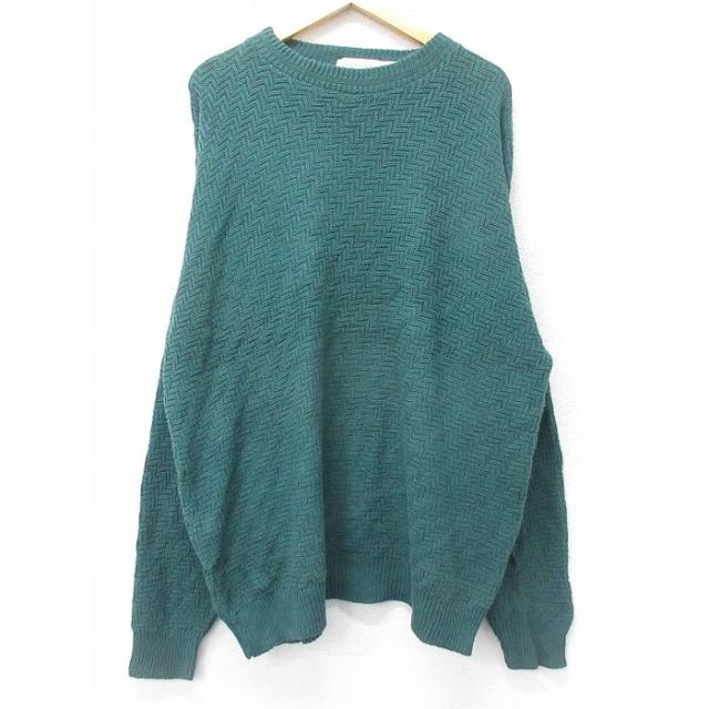 【商品名】 XL★古着 長袖 セーター メンズ 90年代 90s 手織り 大きいサイズ コットン クルーネック USA製 緑