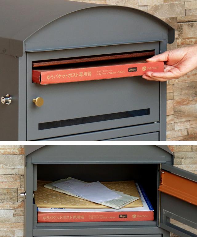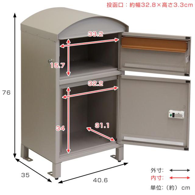 | サイズ | 約 幅40.6×奥行35×高さ76(cm) 上段 投函口:約幅32.8×高さ3.3cm 取出口:約幅33.2×奥行31.1×高さ15.7cm 下段 取出口:約幅32.2×奥行31.1×高さ34cm |