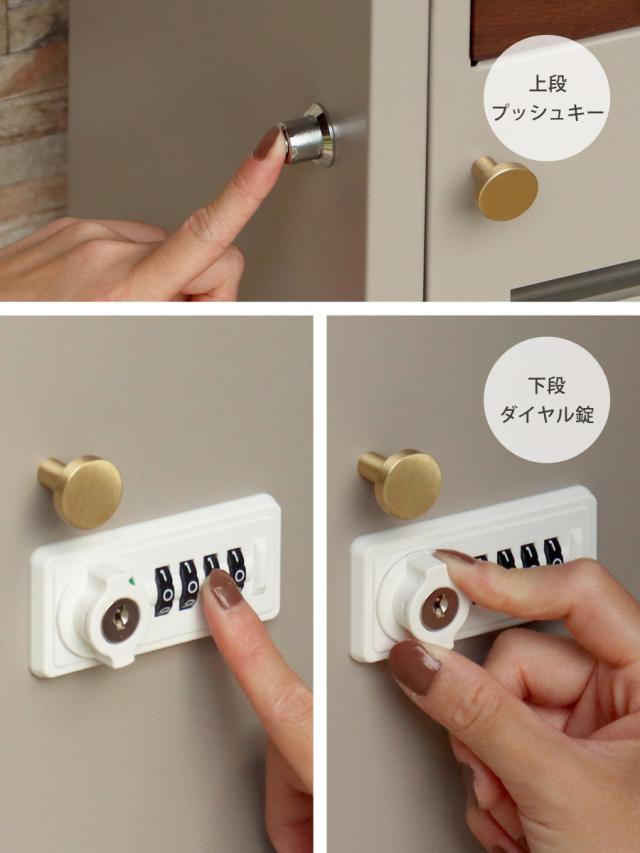 上段は押すだけで簡単に施錠できます。解錠には鍵を使用してください。