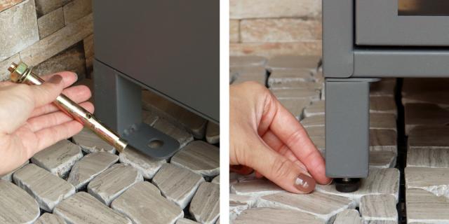 | アンカー固定用穴 地面に固定するためのアンカー用の穴があります。 | ガタ付きを防止するアジャスター アジャスターがあるので、安定して設置できます。 |