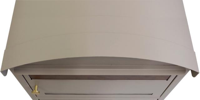 屋根が円形なので、雨水等が流れ落ちやすい形状です。扉の取っ手は丸みがある設計です。投函口の木目柄がアクセントのカジュアルレトロなデザインです。