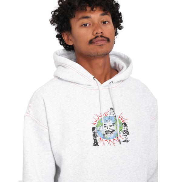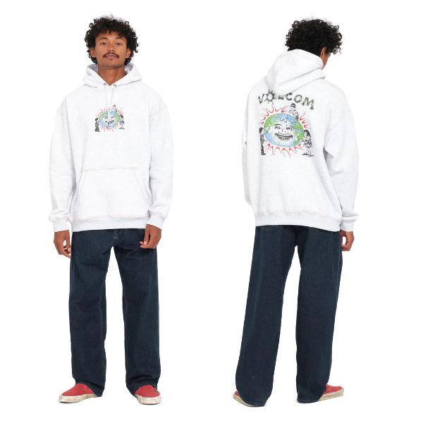 | | メンズフリースパーカー ルーズフィット フロントとバックにスクリーンプリントと刺繍 コントラストステッチ フロントポーチポケット Volcomブランドのメタルトリム 注目のアーティスト:Keutchi 重量 : 350g |