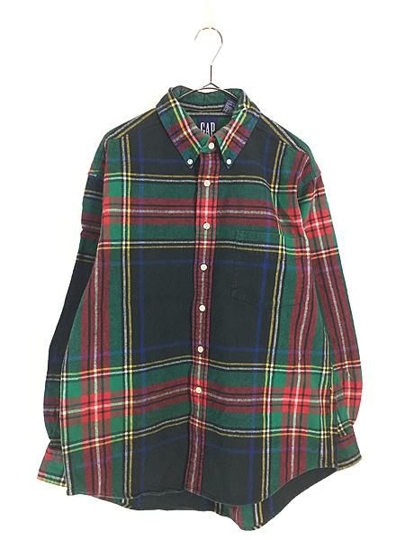 古着 90s GAP タータン チェック フランネル コットン ボタンダウン シャツ ネルシャツ L