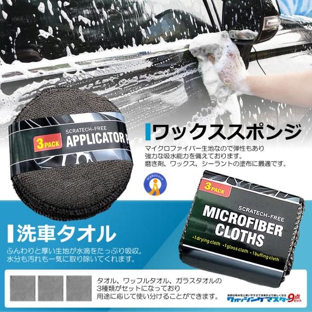 洗車道具 9点 セット 洗車タオル 洗車用スポンジ 洗車手套 タイヤブラシ ワックススポンジ 9SENSHASE s-kk2409-44a