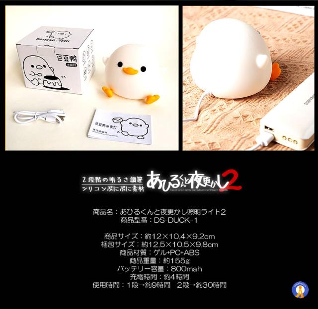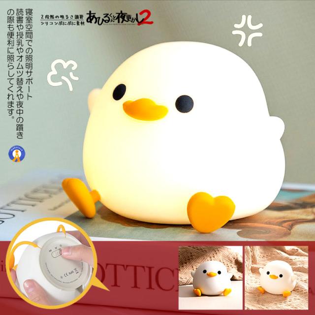 ナイトライト アヒル 照明 ランプ デスクライト 寝室 卓上 お風呂場 子供 LED 間接照明 USB充電 2段階調光 GURUUDUCK s-kk2409-56a