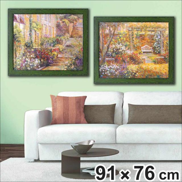 アートパネル ロンゴ 『パティオ ガーデン』 91×76cm ( 絵画 絵 アート インテリア 額 額入り 壁掛け おしゃれ ゲル加工 風景画 花 ポスター アートフレーム アートポスター ウォールアート パネル 額付き モダン )