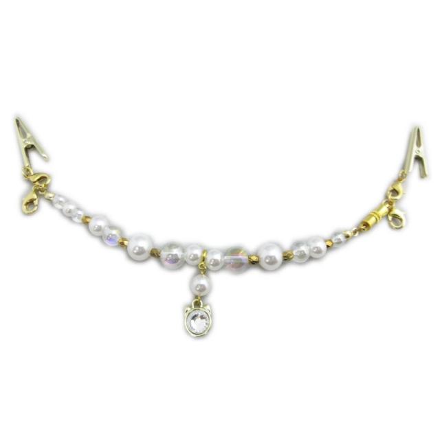 羽織紐 はおりひも 女性用 マグネット パール ビーズ 天然石 クリアシルバー 猫チャーム付 和装 着物 洋装 レディース