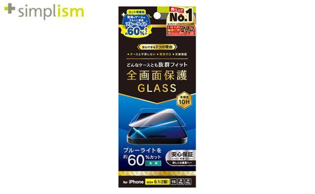 [iPhone 16/15/15 Pro/14 Pro]Simplism シンプリズム ケースとの相性抜群 60%ブルーライト低減 画面保護強化ガラス(光沢)