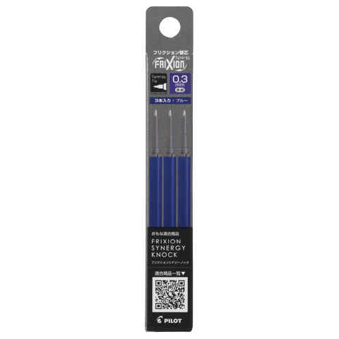 フリクション シナジーノック用替芯 0.3mm 超極細 同色3本セット ブルー こすると消える ゲルインキボールペン パイロット 送料無料