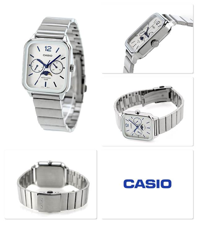 | 仕様 | 日常生活用防水(5気圧) 精度: 月差±20秒 ムーンフェイズ 日付・曜日表示 通常の計時:通常の計時: アナログ: 3 針 (時、分、秒)、3つのダイヤル (日付、曜日、ムーンフェイズ) |