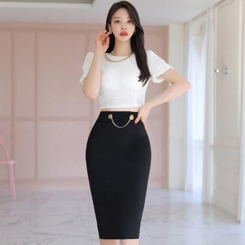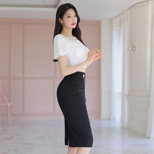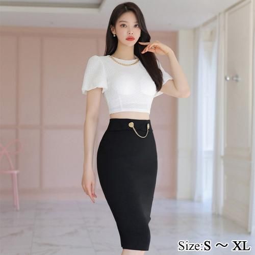 クロップド丈トップスとタイトスカートのセットアップ(キャバドレス・CABARETDRESS)。