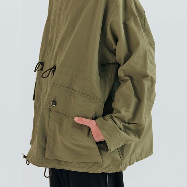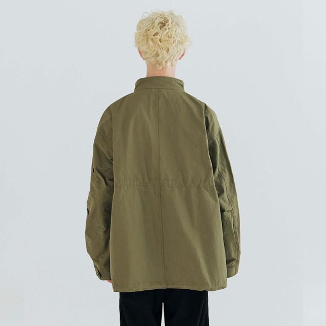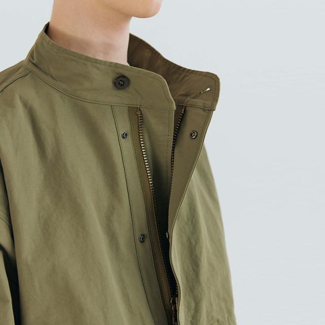 高密度で織り上げられたコットンとナイロンを採用した生地は、張り感がありミリタリー感を演出。洗練されたデザインと機能性を兼ね備えたスタイリッシュなアイテム。