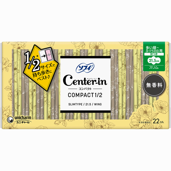 [ユニチャーム]センターイン コンパクト1/2 無香料 多い昼〜ふつうの日用 羽つき 21.5cm 22枚入り[医薬部外品](スリム 生理用品 衛生用品