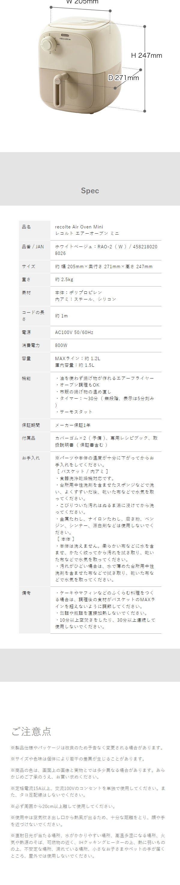 [ recolte エアーオーブン ミニ ]ノンフライヤー レコルト 電気フライヤー ノンオイルフライヤー エアオーブン ヘルシーフライヤー エア フライヤー 家庭用 卓上 唐揚げ 揚げ物 コンパクト 小型 温め直し 油なし 1.5L フライ RAO-2