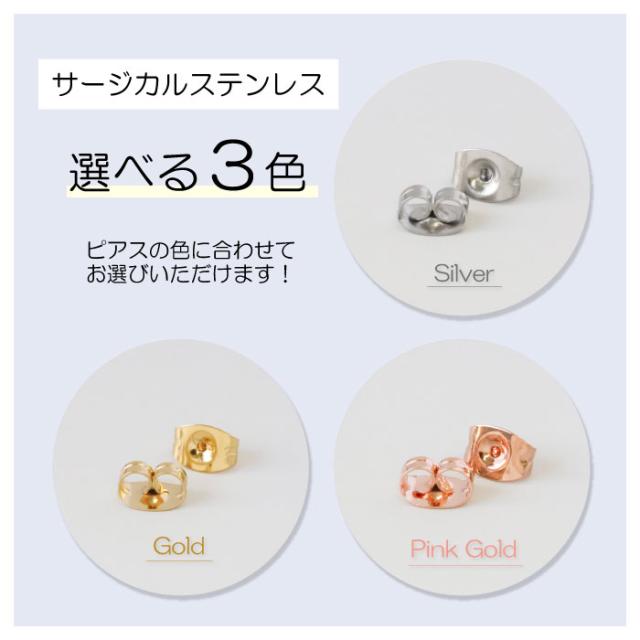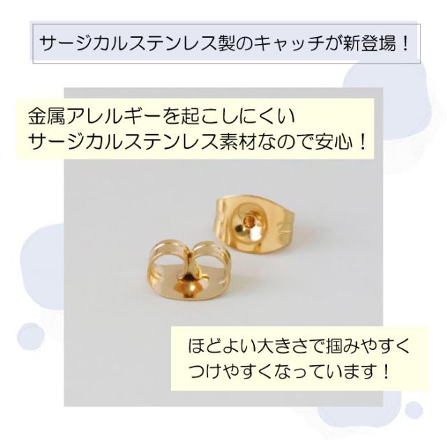 - ステンレス製のキャッチは物によっては硬すぎるて着けにくい。 こちらのキャッチは程良く柔らかいので着けやすいです。好みもあるかと思いますが私はこちらのキャッチが好みだったので購入しました。