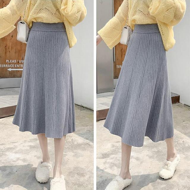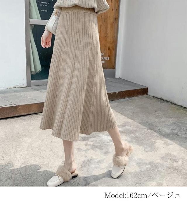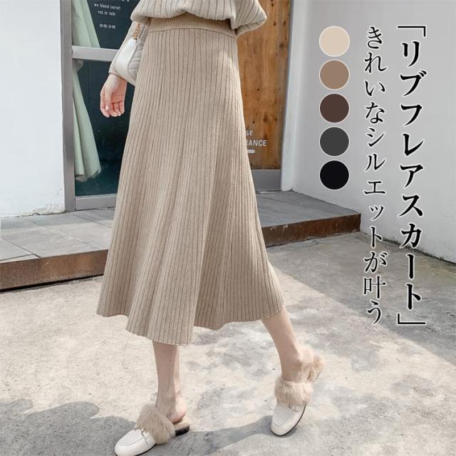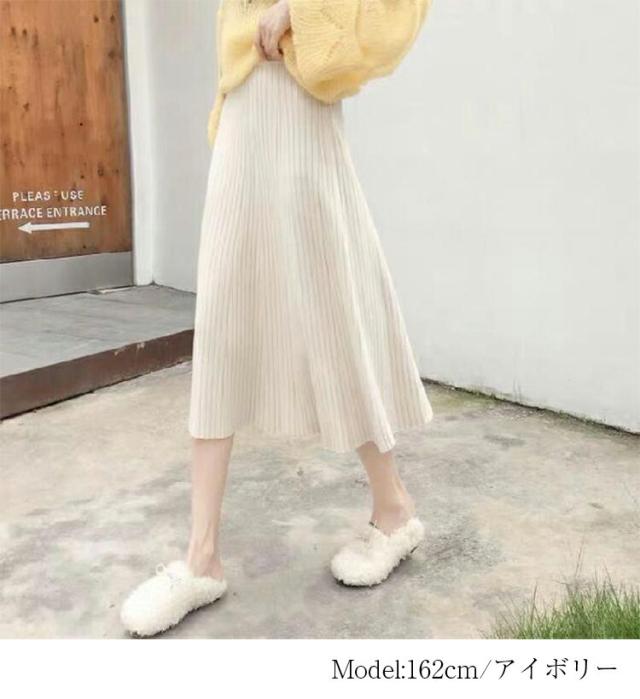ニットスカート プリーツ スカート レディース 秋 冬 ニットスカート プリーツスカー ト ロングスカート フレアスカート ボトムス ロング丈 ウエストゴム Aライン 大人可愛い 美脚 大きいサイズ