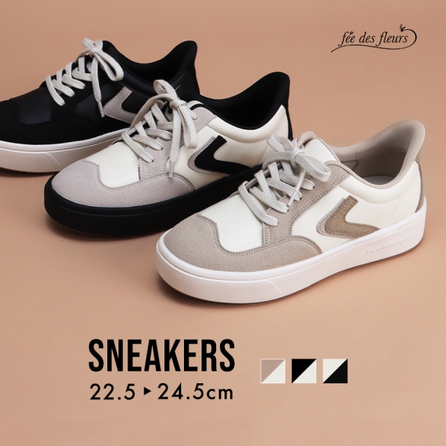 メンズライクなデザインがオシャレな快適スニーカー。ソールとアッパーの配色がコーディネートのワンポイントになります♪