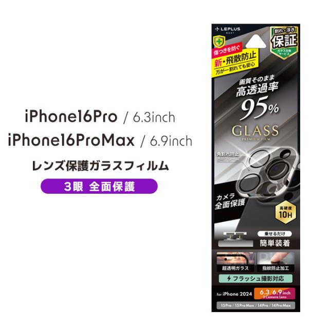 iPhone16Pro iPhone16ProMax 3Lens レンズ保護ガラスフィルム GLASS PREMIUM FILM 全面保護 高透過 約95% メール便送料無料