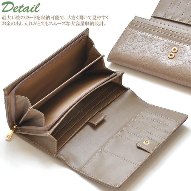 牛革にプラントパターンを型押しした長財布です。